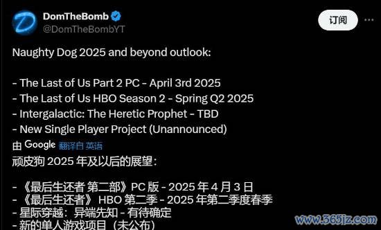 游戏博主DomTheBomb整理了顽皮狗2025年及以后的项目前瞻:股票配资平台开发代理